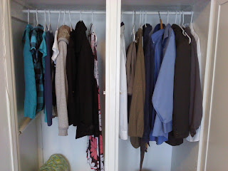 I guess i could of taken a picture of my half of the closet.I don't hang up a lot of my clothes most are in the dresser, but there is a lot of blues, teals and blacks this winter.